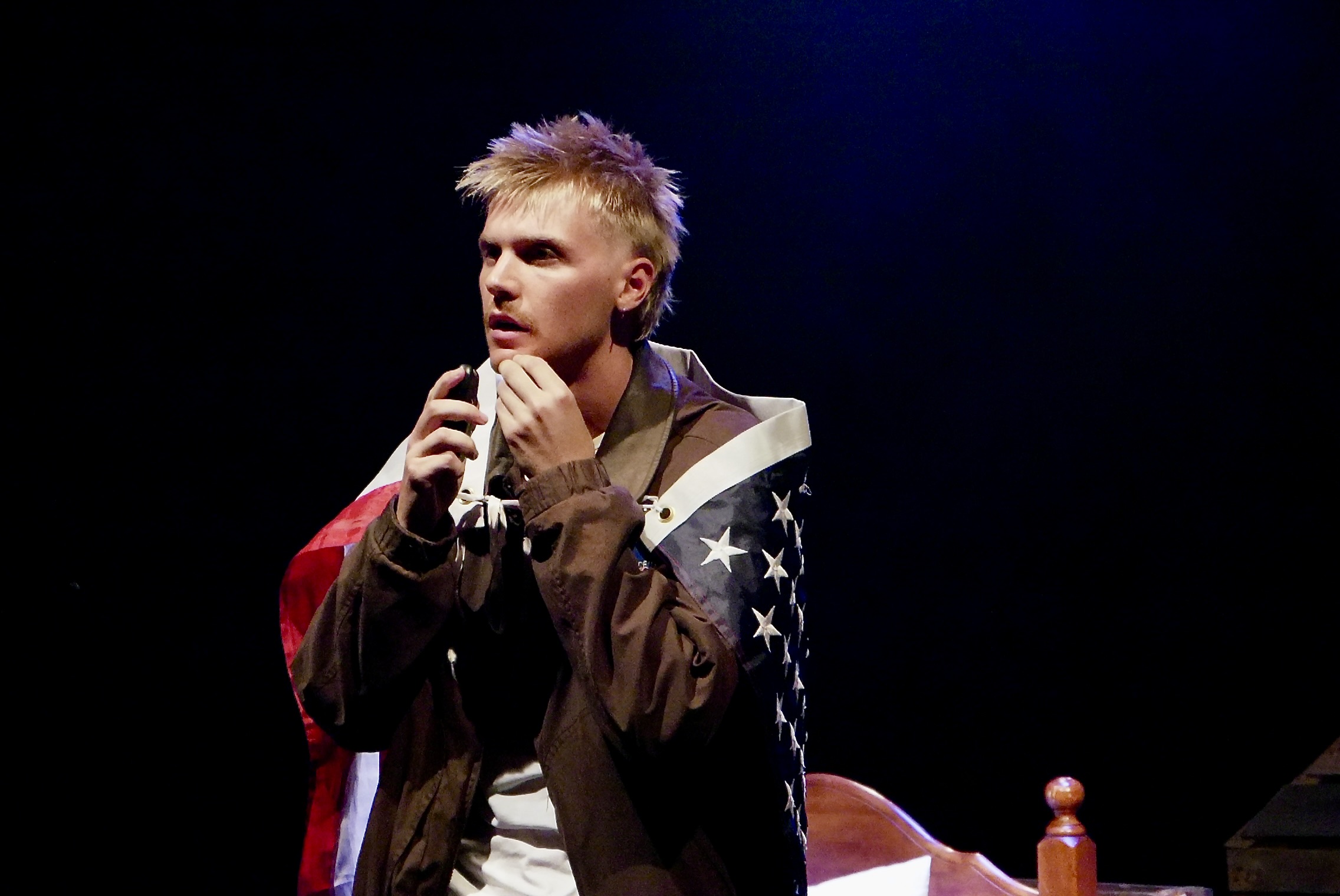 I use the adjective American advisedly, because A Lie of the Mind could be read as a state-of-the-nation play, rather than solely a domestic drama. The last time Jake saw his father, in Mexico, they were disgustingly drunk and racing each other to get back to the States. And this father wasn’t just any American, he was a decorated serviceman, and after his death his ashes were delivered to the family with a flag – a prop which then features prominently in the events of the present.