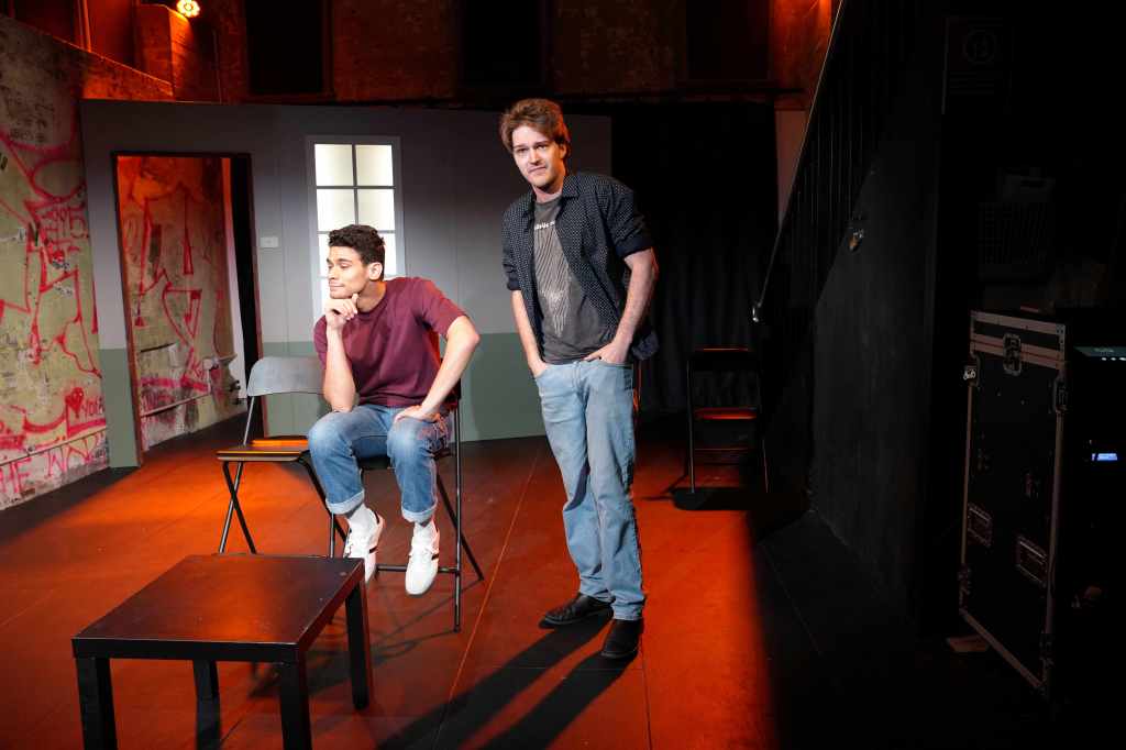 One of the most intriguing creative choices made in Jeffrey Jay Fowler & Chris Isaacs’ script is to reject the convention of presenting a series of dramatic scenes portraying moments in the characters’ relationship. Instead, the two characters directly address the audience, not each other, taking turns to tell us their own version of the unfolding events. This juxtaposition effectively creates humour, but it also makes very apparent to the audience the isolation of the two men, and their differences.